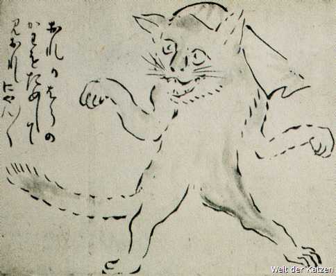 In der japanischen Literatur wird die Katze etwa ab dem 10. Jahrhundert nach Christus (Heian Periode) erwähnt. Nach weiteren 200 bis 300 Jahren hat sie es dann immerhin schon geschafft, auf Holzschnitzereien abgebildet zu werden.