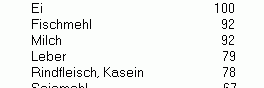 Zu beachten ist, dass die verschiedenen möglichen Proteinquellen in der Katzennahrung von unterschiedlicher Qualität sind. Diese wird über die biologische Wertigkeit (BW) bestimmt und ergibt sich aus der Differenz zwischen aufgenommener und wieder ausgeschiedener Menge. Die biologische Wertigkeit verschiedener "Proteinlieferanten", wie sie häufig in Katzennahrung enthalten sind, (Krafft/Dürr et al.) können Sie der nebenstehenden Tabelle entnehmen.