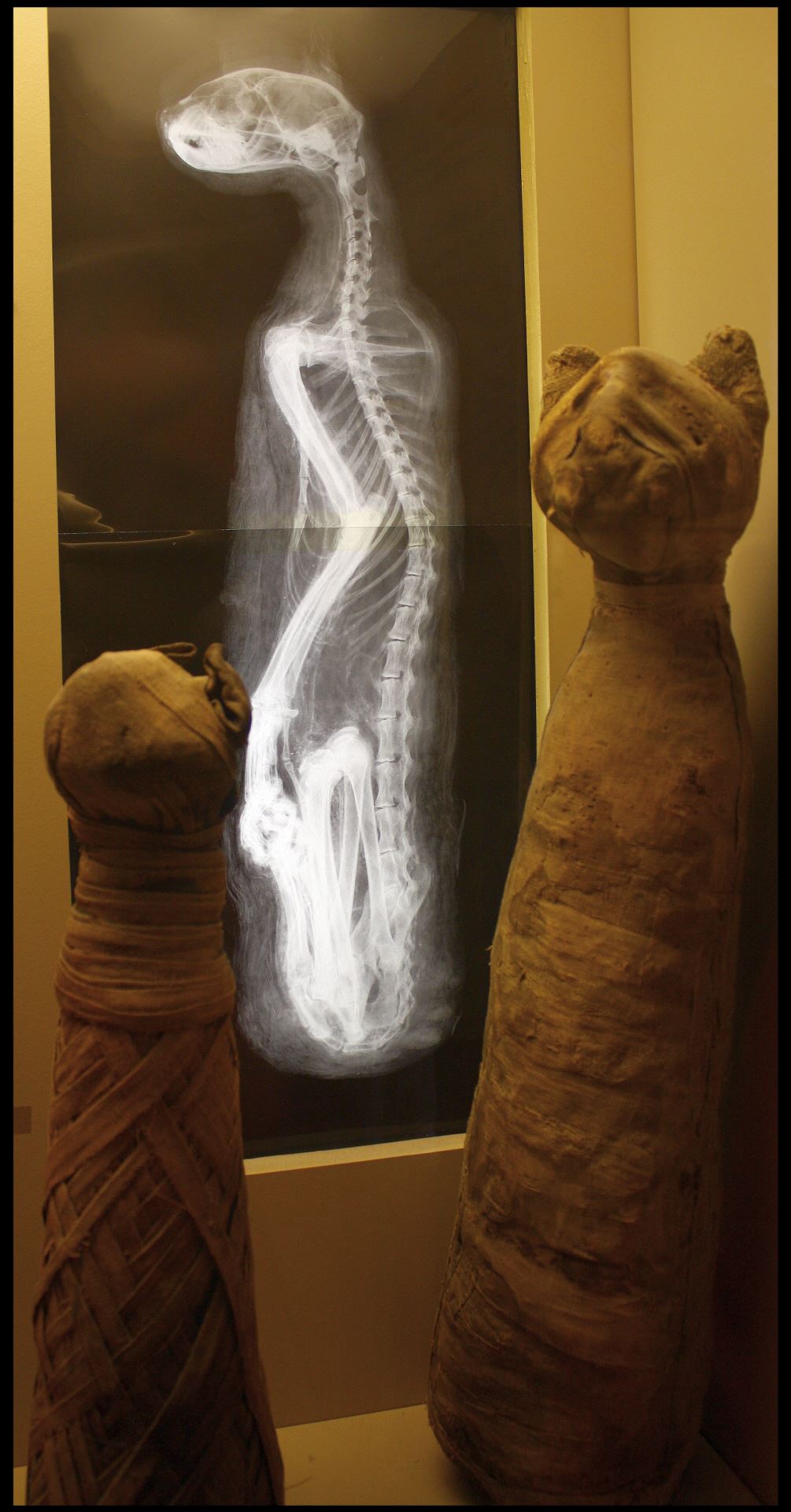 Der Kult hatte allerdings durchaus zwei Seiten. Denn das Tötungsverbot galt scheinbar nicht in den sakralen Bereichen der Kultstätten. Um der Göttin zu huldigen, wurden ihr - wohl hauptsächlich von den ärmeren Teilen der Bevölkerung, die sich keine Statuetten leisten konnten - die mumifizierten Katzen als Opfer dargebracht. Zu diesem Zweck konnten Katzen von Gläubigen erworben werden, wurden dann von Priestern getötet und mumifiziert um anschließend in einer speziellen Grabstätte beigesetzt zu werden. Untersuchungen der Katzenmumien weisen darauf hin, dass die Kätzchen im Alter bis etwa 1 1/2 Jahren entweder stranguliert oder durch Genickbruch bzw. Zerschmettern des Kopfes getötet wurden.