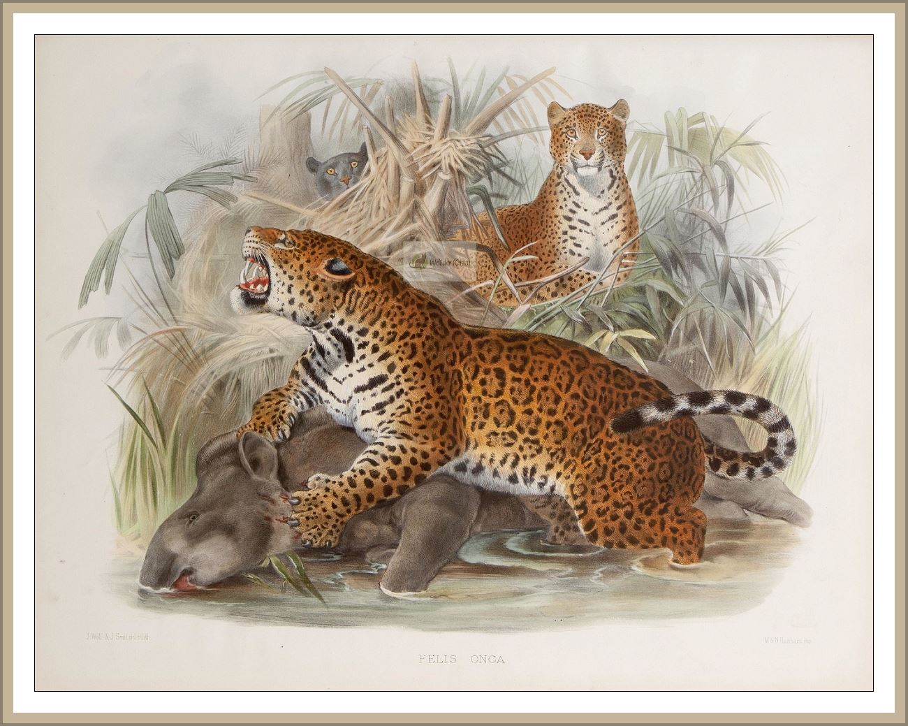 Kaup (1835) sah in ihm sogar die zweitgrößte Katzenart, nach dem Tiger. Zudem führt diese aus, "[...] und vertritt in jeder Hinsicht dessen Stelle im südlichen Amerika; nur ist er von Ansehen plumper und zeigt mehr Kraft als Gewandtheit." [4]