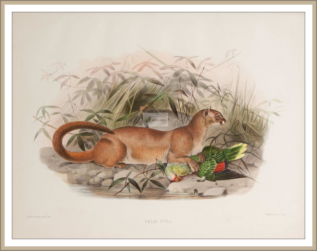 Der Jaguarundi (Herpailurus yagouaroundi, oft auch Felis yagouaroundi oder Felis eyra), entspricht von der Größe her etwa einer großen Hauskatze. Er ist auch unter dem Namen Wieselkatze bekannt, was sicher darauf zurückzuführen ist, das seine äußere Erscheinung weniger an eine Katze, sondern mehr an ein Wiesel erinnert.